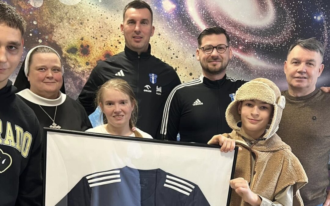 Naszych przyjaciół z Wisła Płock zapraszaliśmy na Jasełka do Mocarzewa już we wrześniu. Ich przyjazd na przedstawienie do Ośrodka sprawił nam ogromną radość. Odwiedzili nas bowiem: Bartłomiej Sielewski – dyrektor do spraw skautingu w Wiśle Płock oraz Mateusz Lenkiewicz – rzecznik prasowy Wisły Płock, dyrektor do spraw sprzedaży i marketingu. Dostaliśmy od nich wyjątkowy prezent jakim jest symboliczna koszulka Wisły Płock. Dziękujemy za czas poświęcony naszym mocarnym wiernym kibicom. Dla nas wielka rzecz mówić, że jesteście naszymi przyjaciółmi.